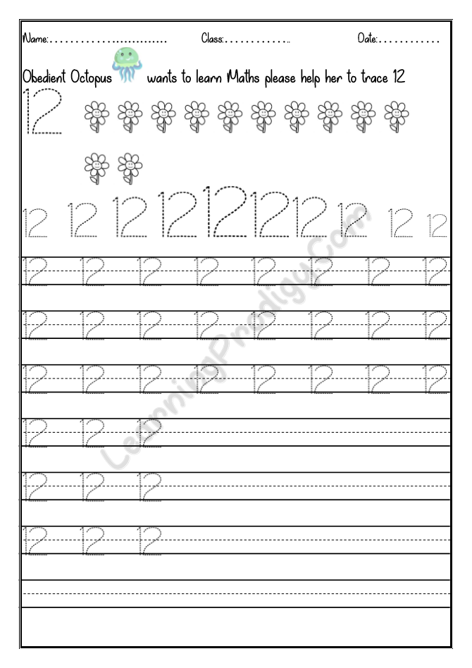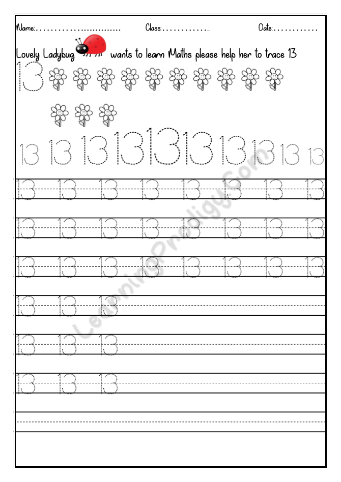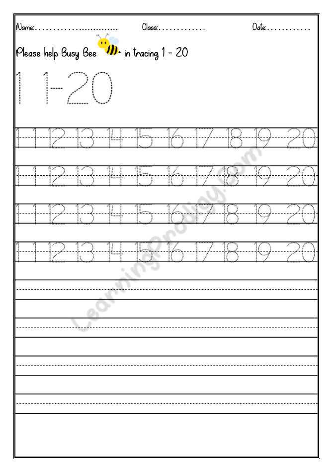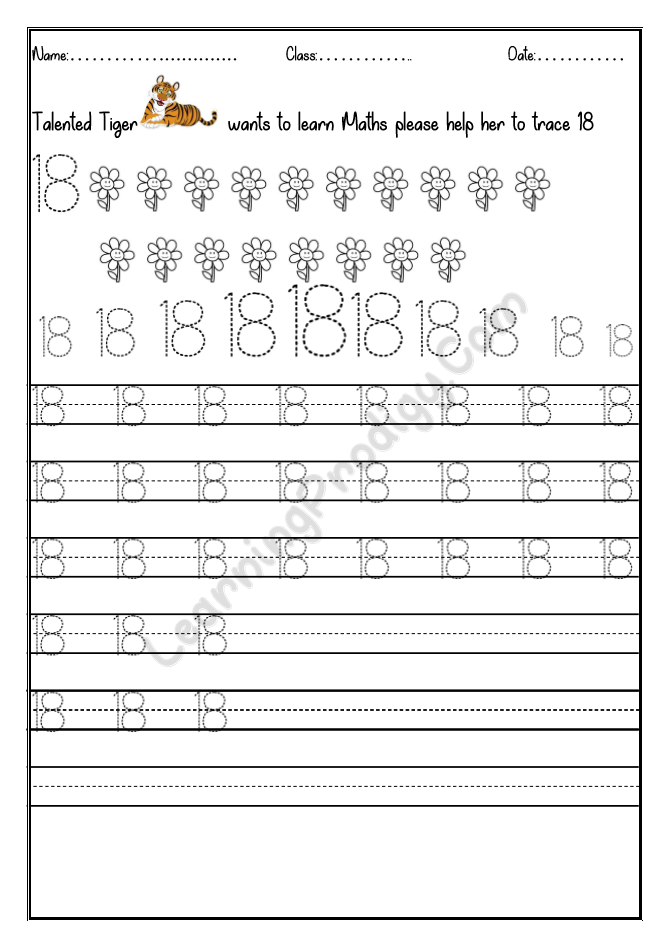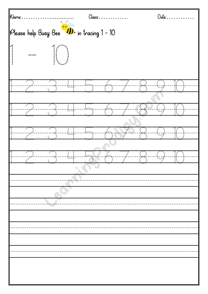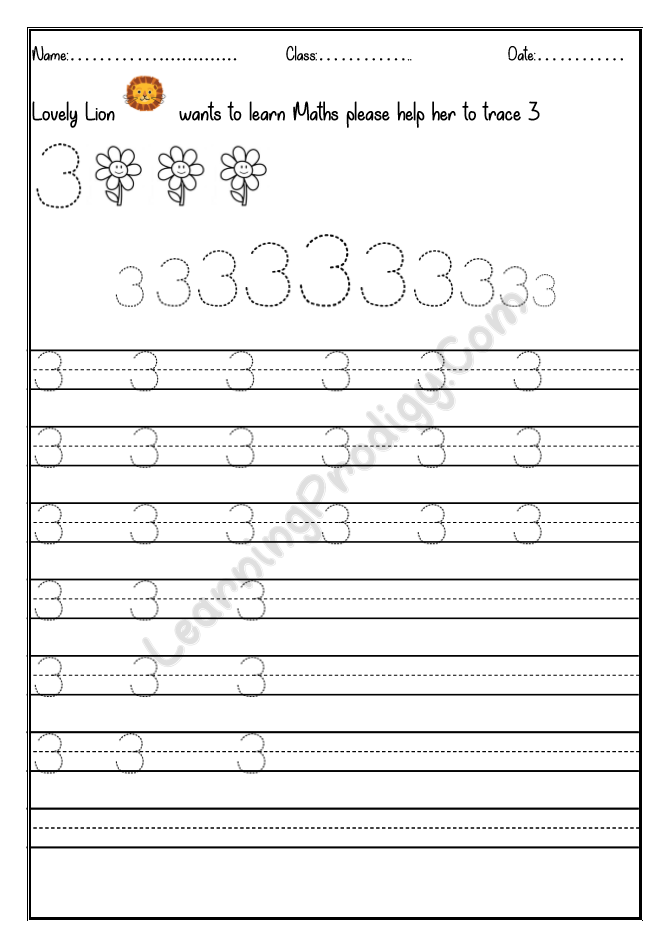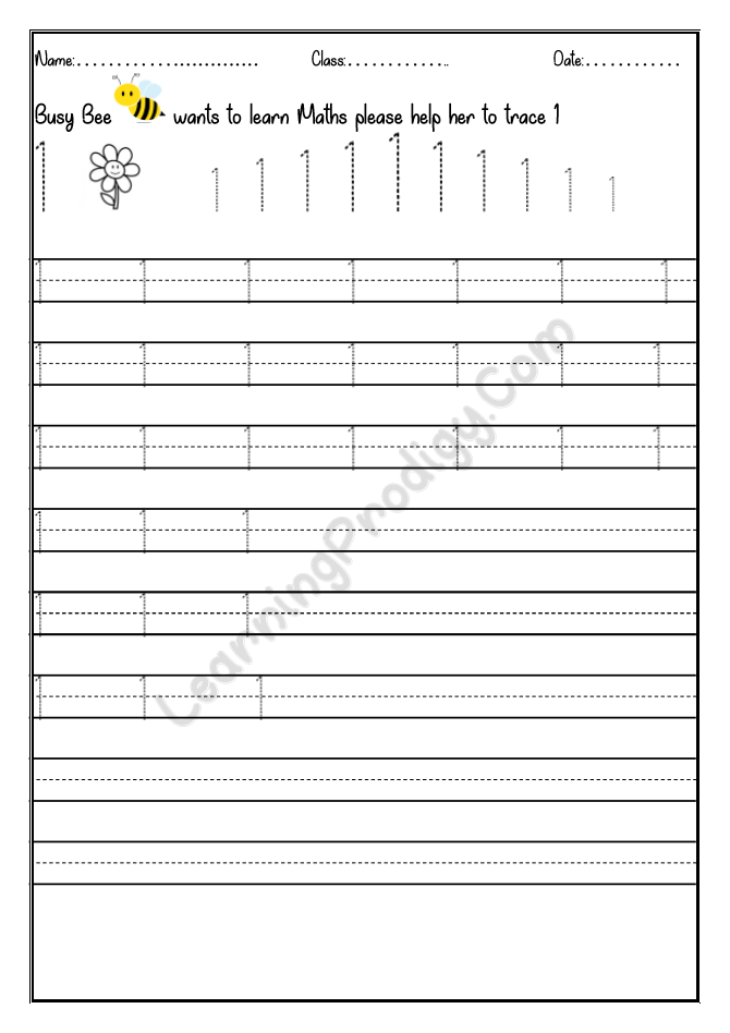 In this worksheet the first few lines they trace alone the dotted numbers, later the child can try to write on their own.