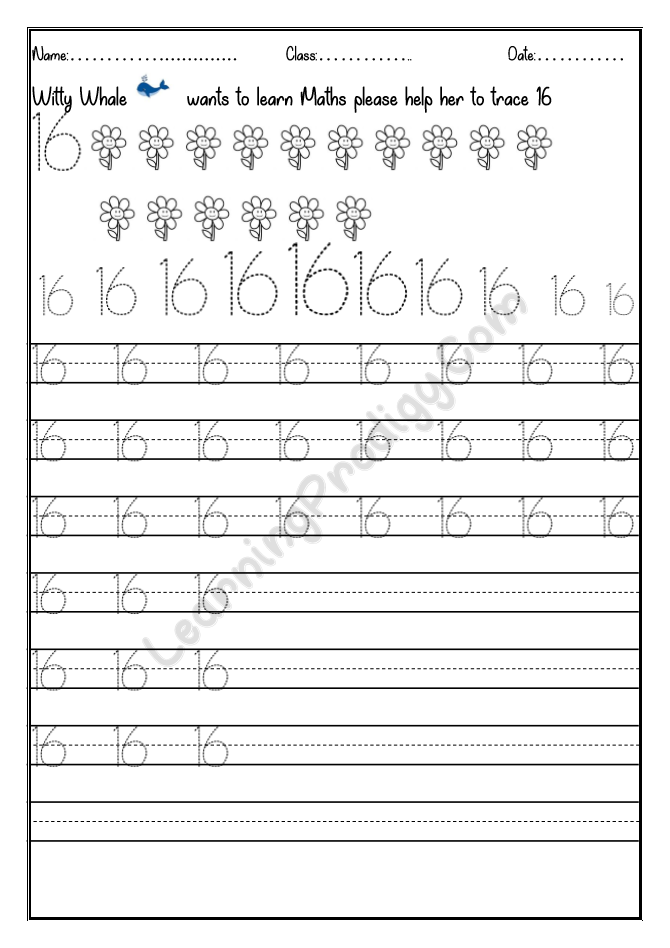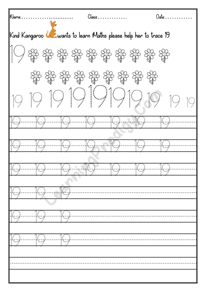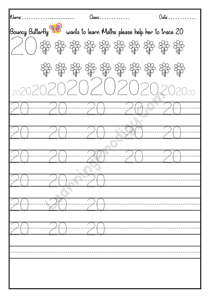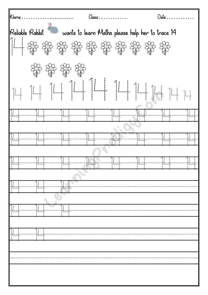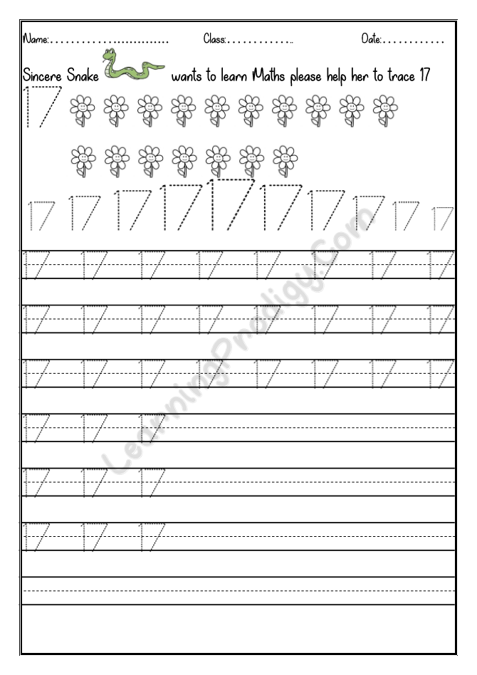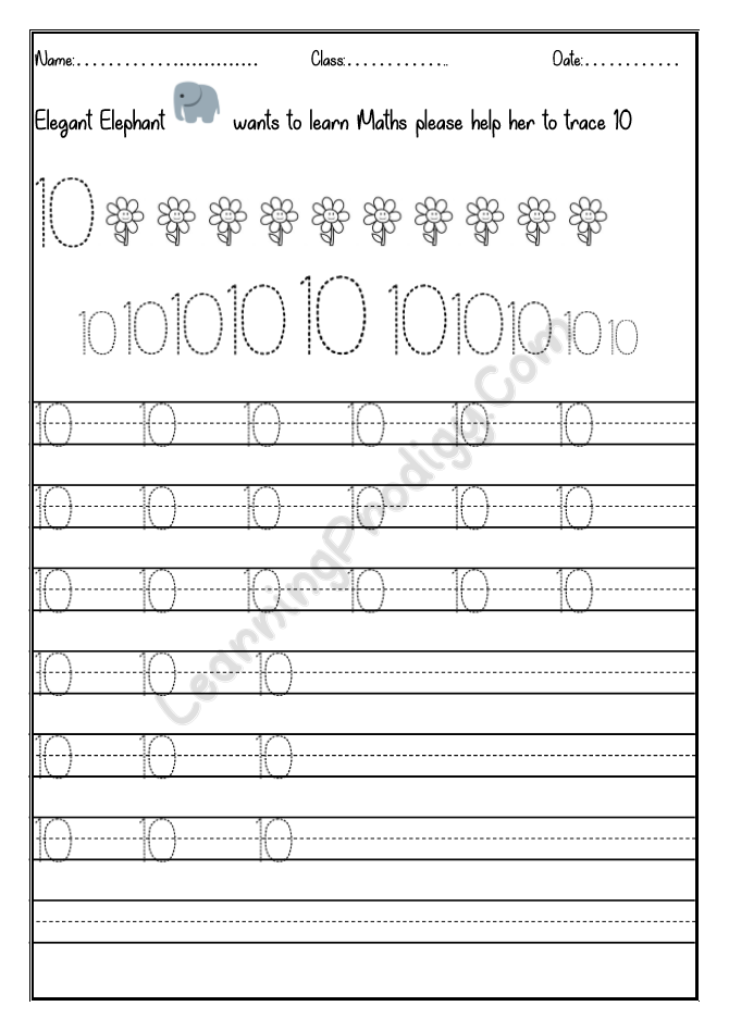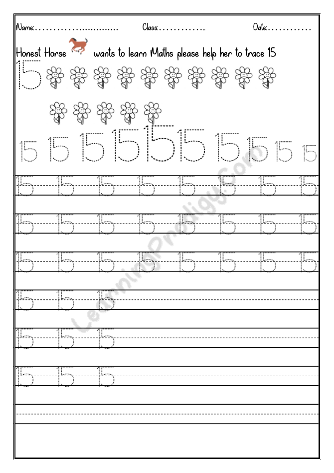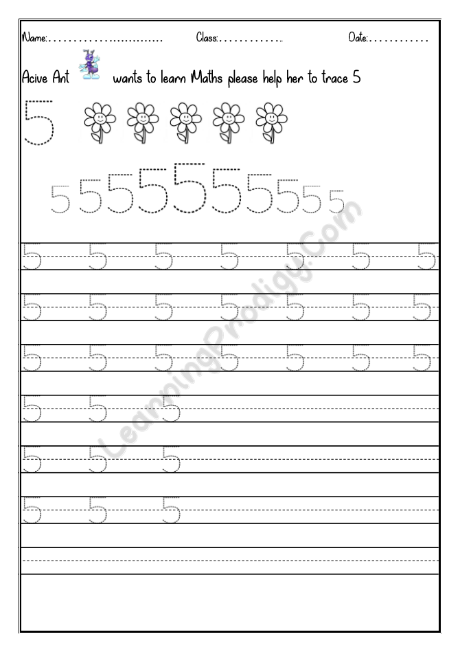 In this worksheet the first few lines they trace alone the dotted numbers, later the child can try to write on their own.