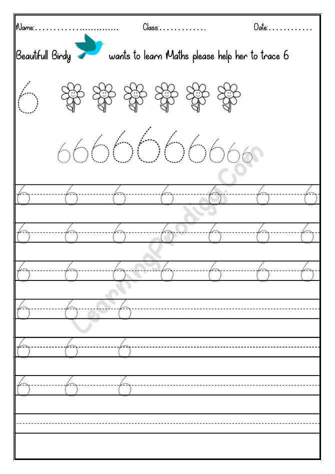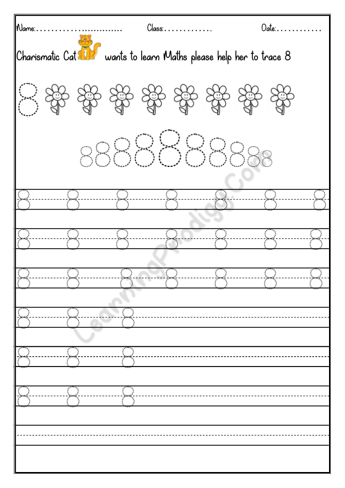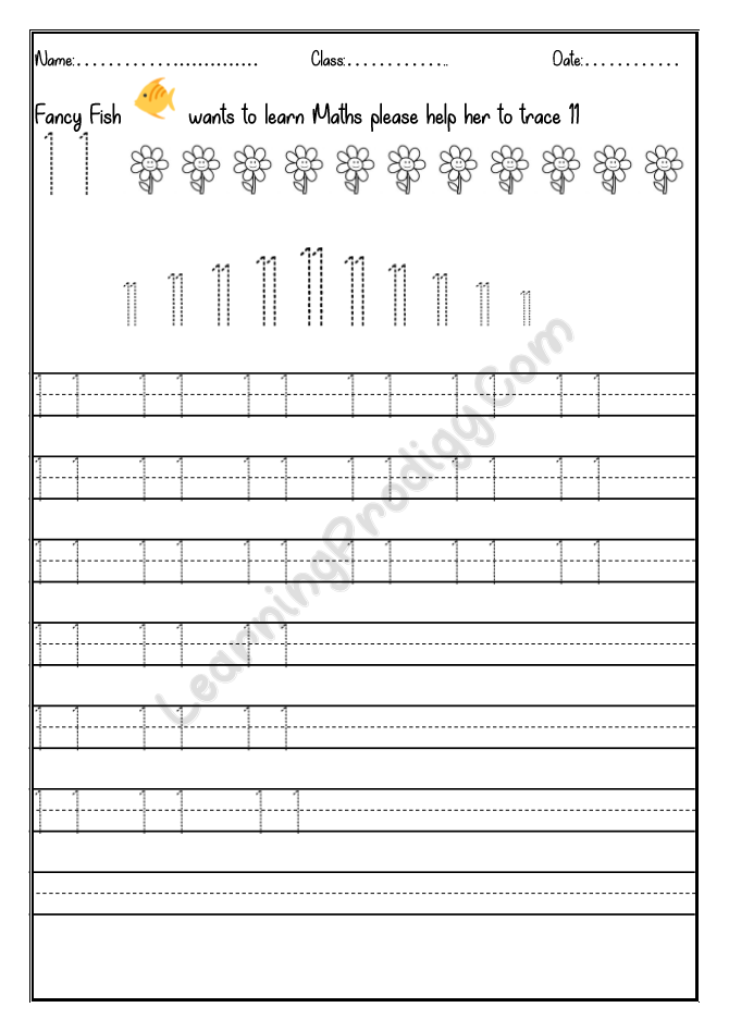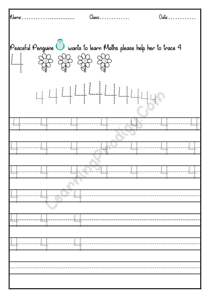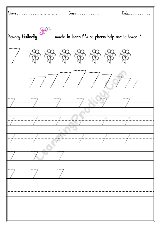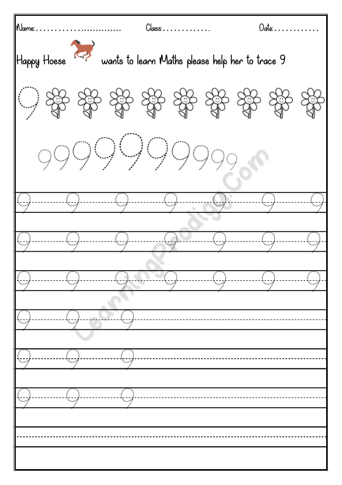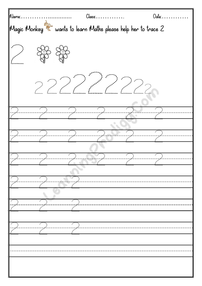 In this worksheet the first few lines they trace alone the dotted numbers, later the child can try to write on their own.