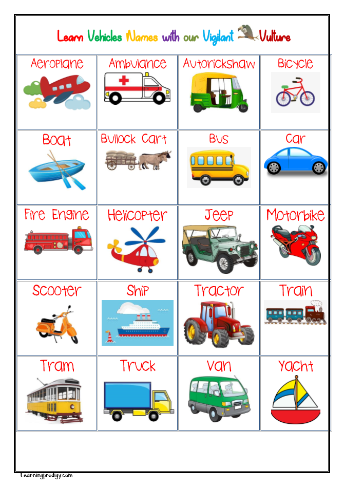 Let’s learn what are the different vehicles used for transportation with our interesting colourful Chart.